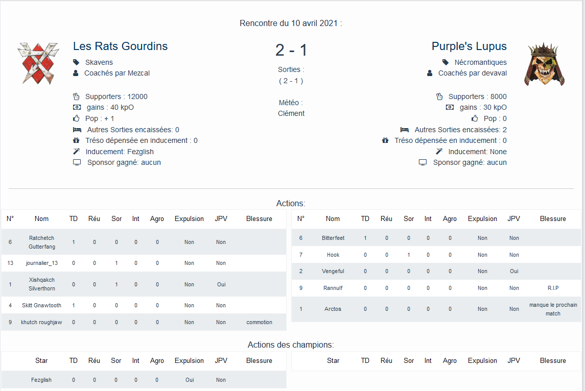 C’est le forfait pour Doud? et donc victoire pour mes rats sur tapis vert?