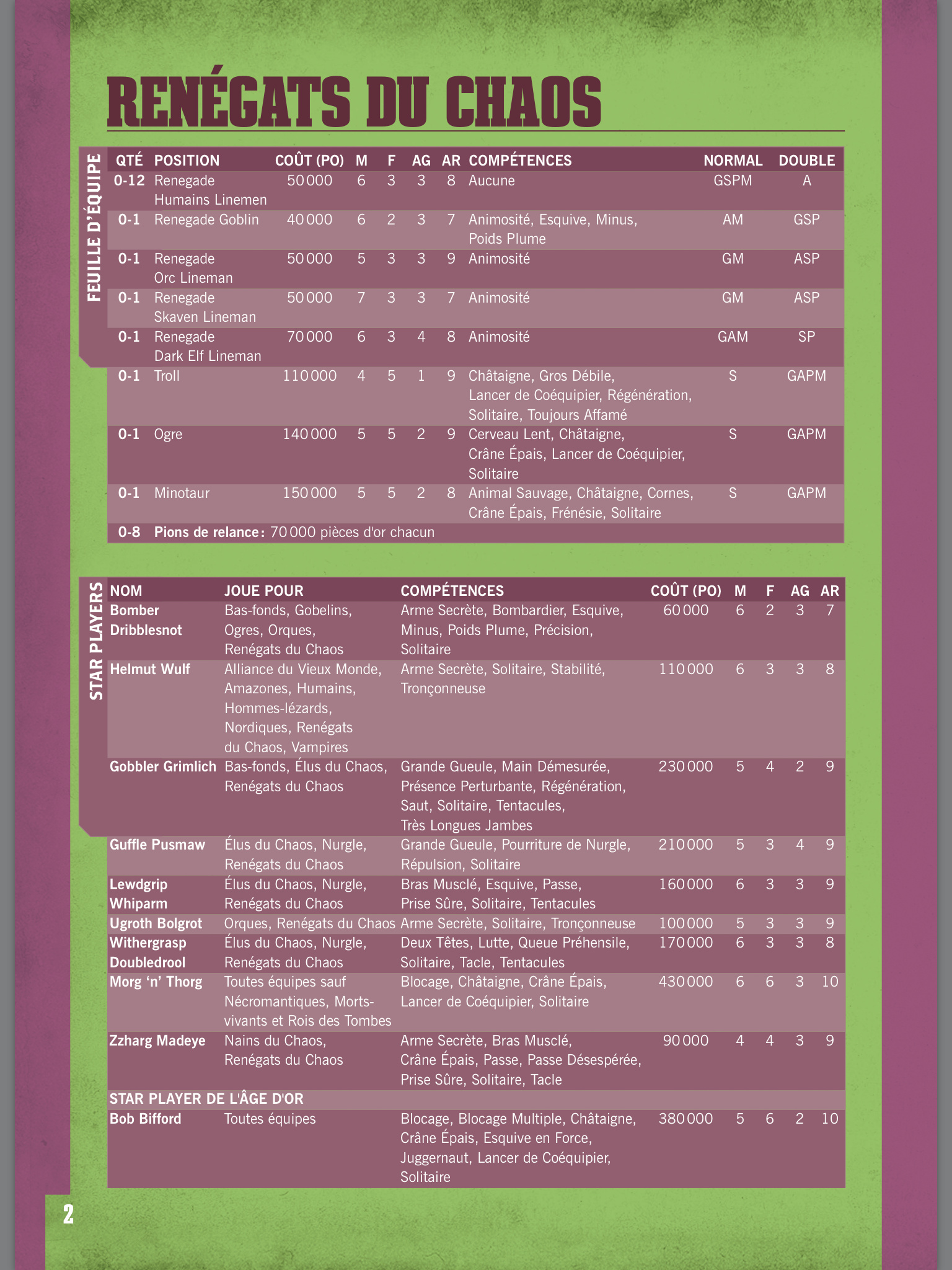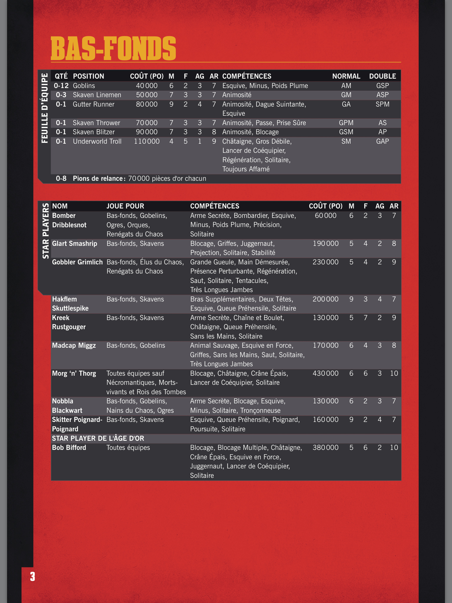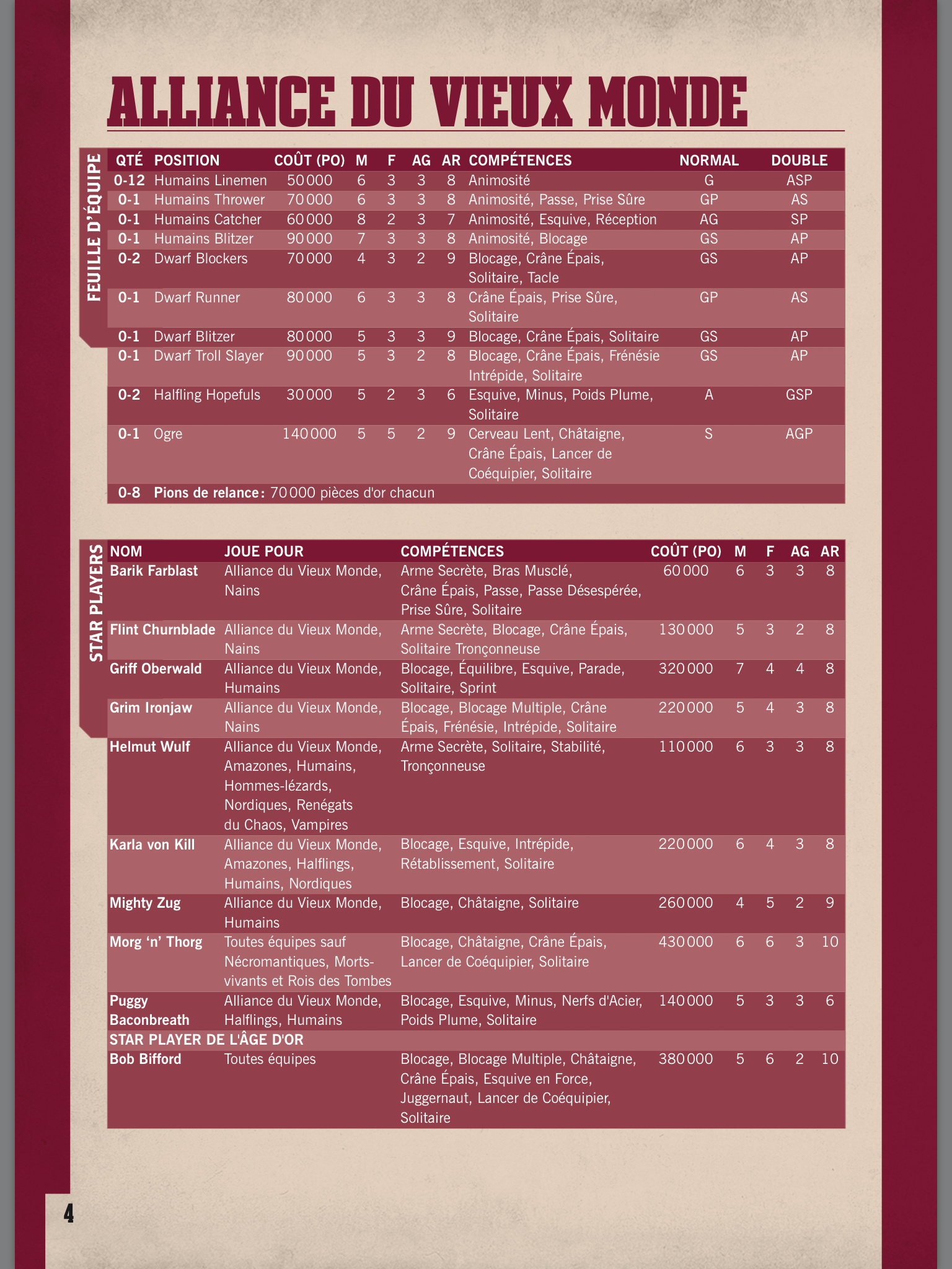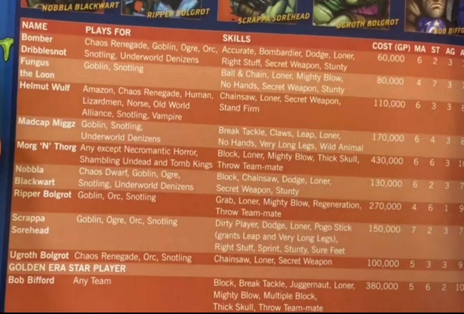 Les modifs du roster semblent liés au game design puisque le Vieux Monde n’a que 2 Bloqueur Nain et 2 Half alors qu’il y en aura 3 dans la boite.