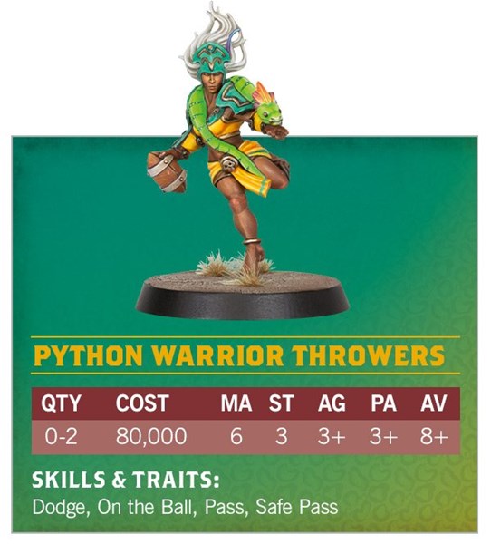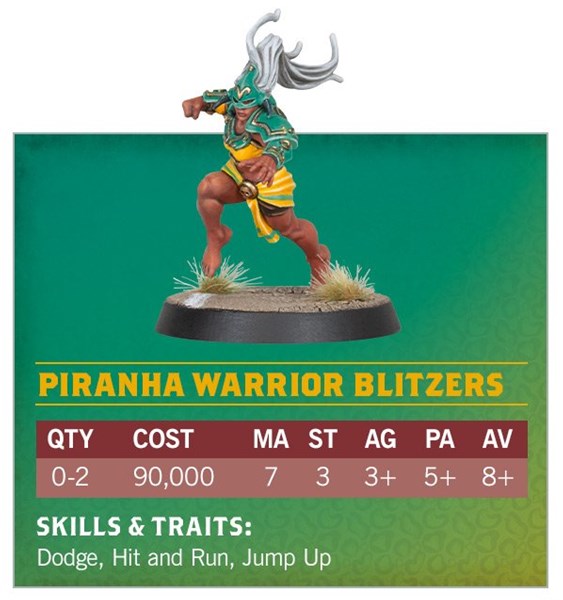 Moi ce qui me surprend c’est que les piranha warriors sont indiqué comme les blitzers mais ils ont les bras nus, quand les jaguar warrior (blockers) ont des grosses griffes qu’on retrouve plus souvent sur les blitzers. Après, Jaguars, les griffes ça se comprend.