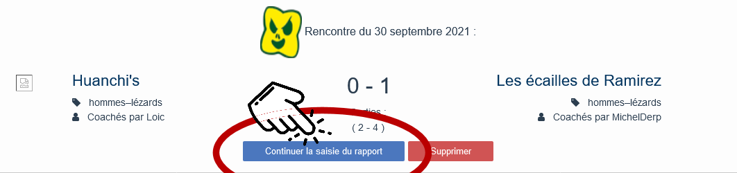 c’est comme si tu ne voyais pas que le match avait été dé-publié. Essaie peut être de rafraichir ton navigateur pour vider le cache ou change de navigateur. Il a été constaté quelques dysfonctionnements avec Firefox de mémoire (même si moi qui l’utilise jamais)