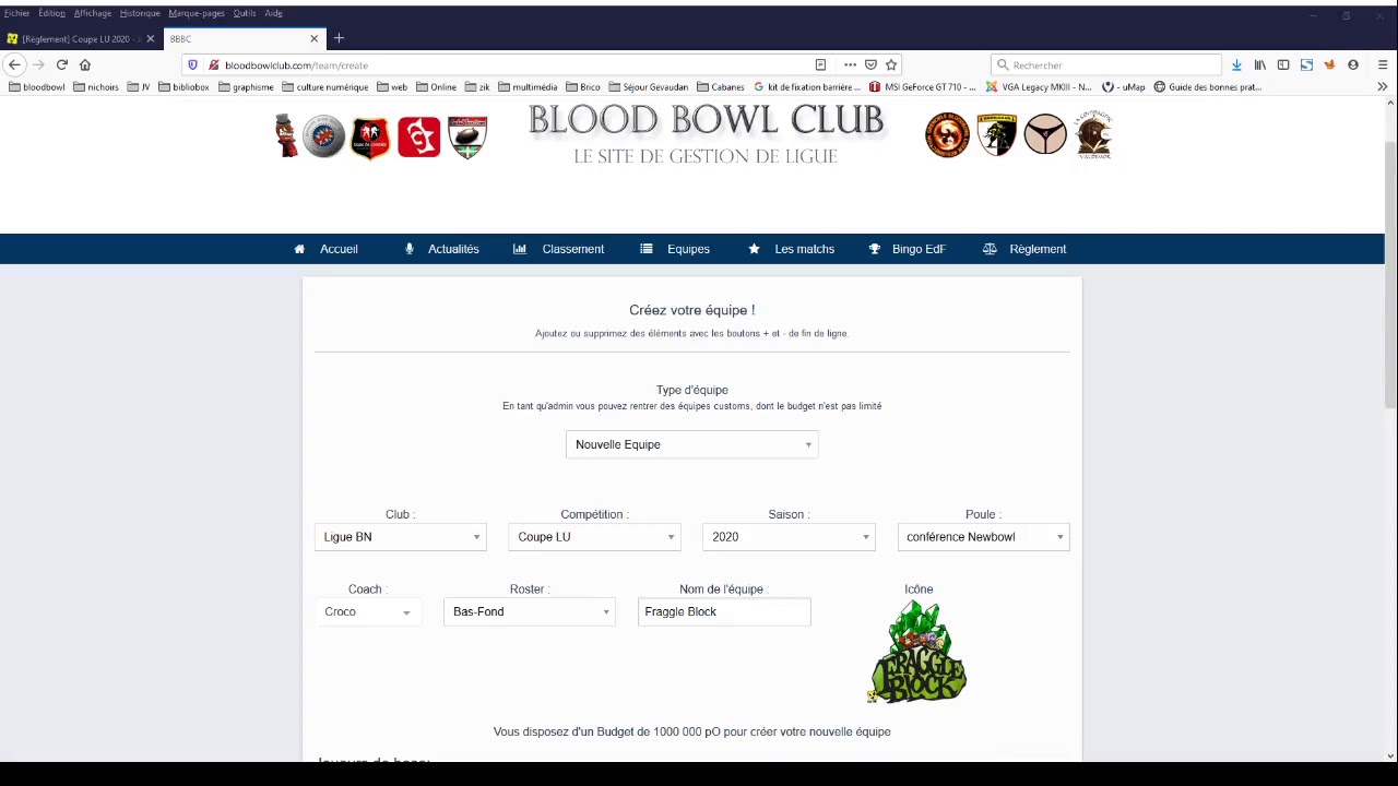 Tutoriel pour créer son équipe sur BBBC :