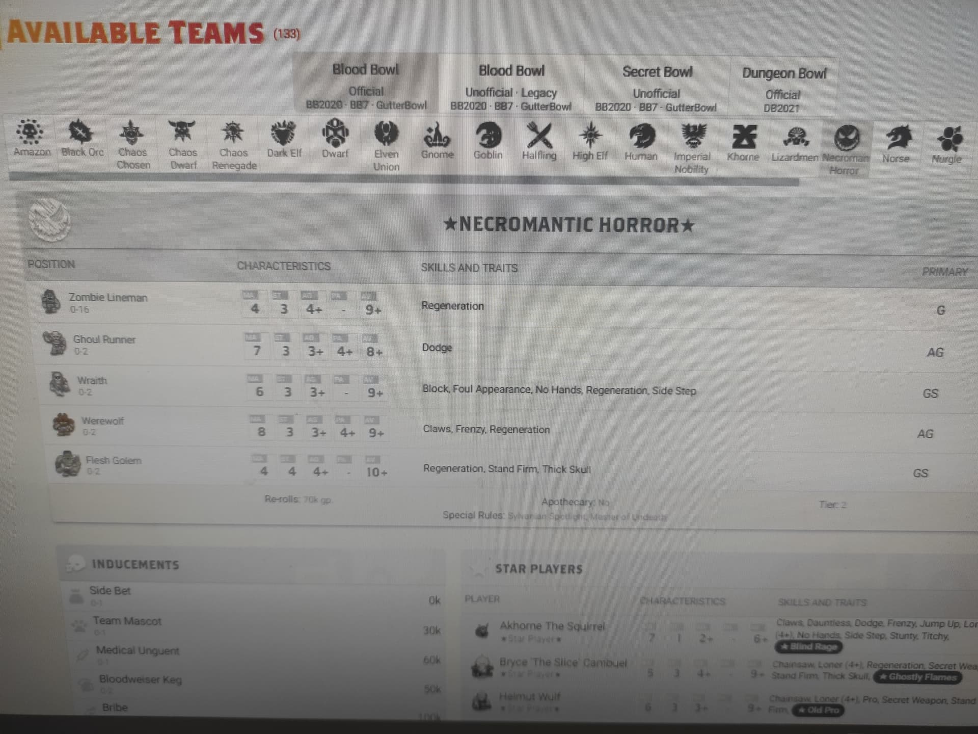 salut les copains je voulais inscrire mon équipe sur Tourplay mais je ne vois pas les horreurs nécromantique ? j ai raison?