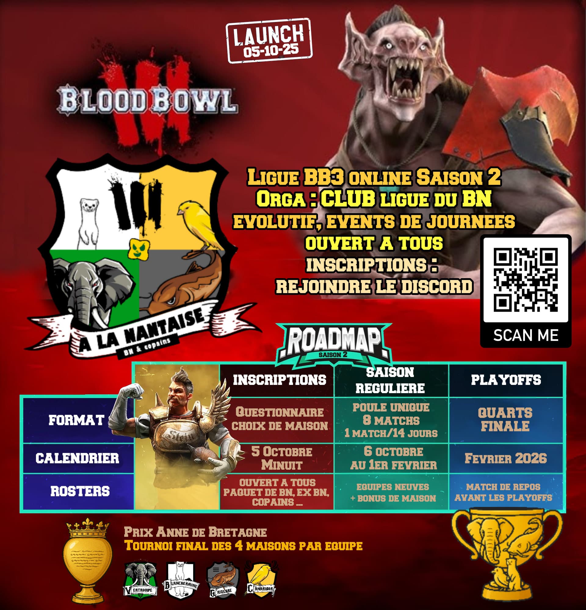Les inscriptions pour la Saison 2 de la ligue A la Nantaise ouverte à tous sur BB3 sont ouvertes